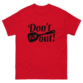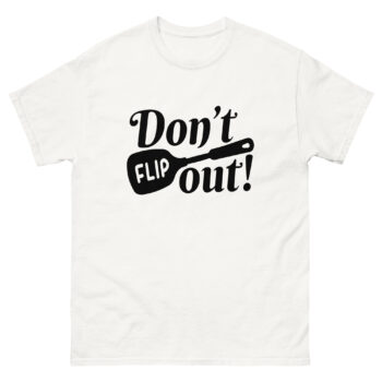 The “Don’t Flip Out!” tee is the perfect blend of food pun and sass. Whether you’re flipping burgers, pancakes, or just losing your cool in the kitchen, this shirt delivers a humorous reminder to stay chill. Great for foodies, grillers, and anyone who loves a clever joke in cotton form
