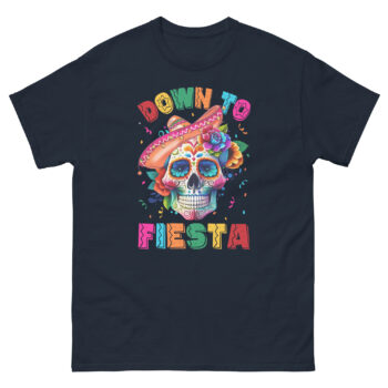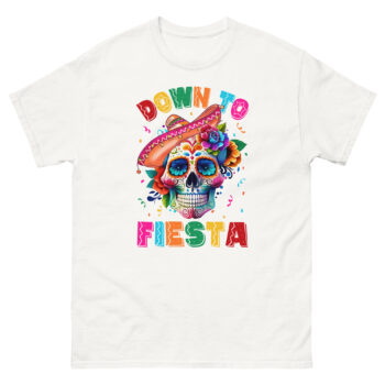Unlike generic Mexican fiesta shirts, this skeleton sombrero tee merges the iconic Día de los Muertos sugar skull with a festive twist. The “Down to Fiesta” slogan adds a modern, party-ready edge, making it ideal for Cinco de Mayo, Day of the Dead, or any celebration.