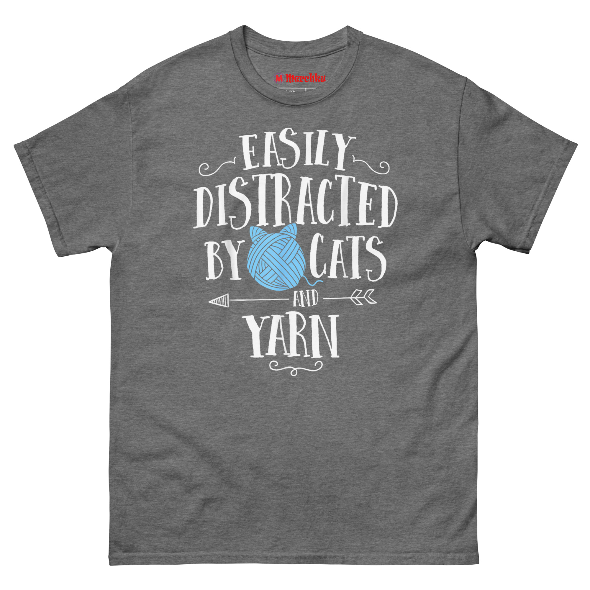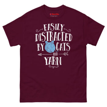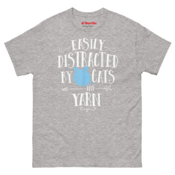 The Easily Distracted by Cats and Yarn T Shirt perfectly captures the beautiful chaos of a crafter’s life. Featuring whimsical hand-lettered text and a unique “yarn-cat” hybrid icon, this shirt celebrates two of life’s greatest obsessions. It’s one of the best gifts for knitters who understand that no project is safe from a curious feline.