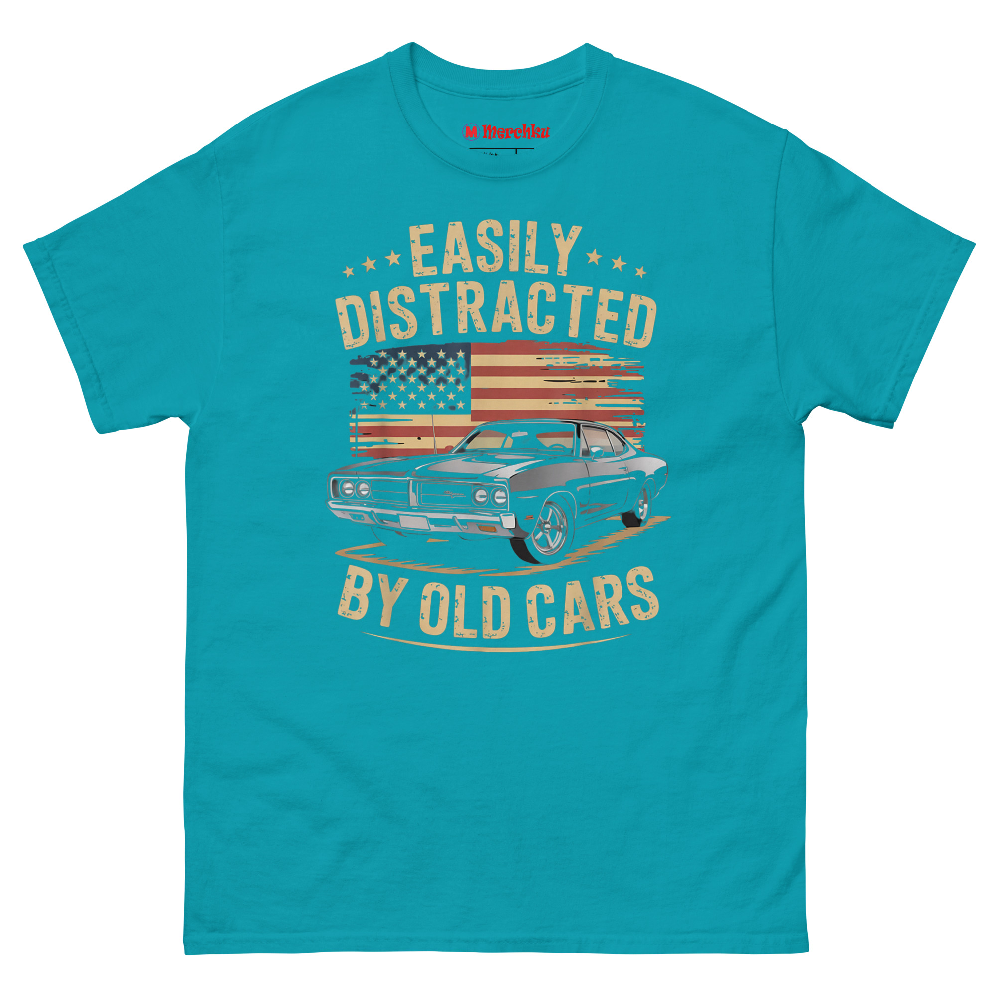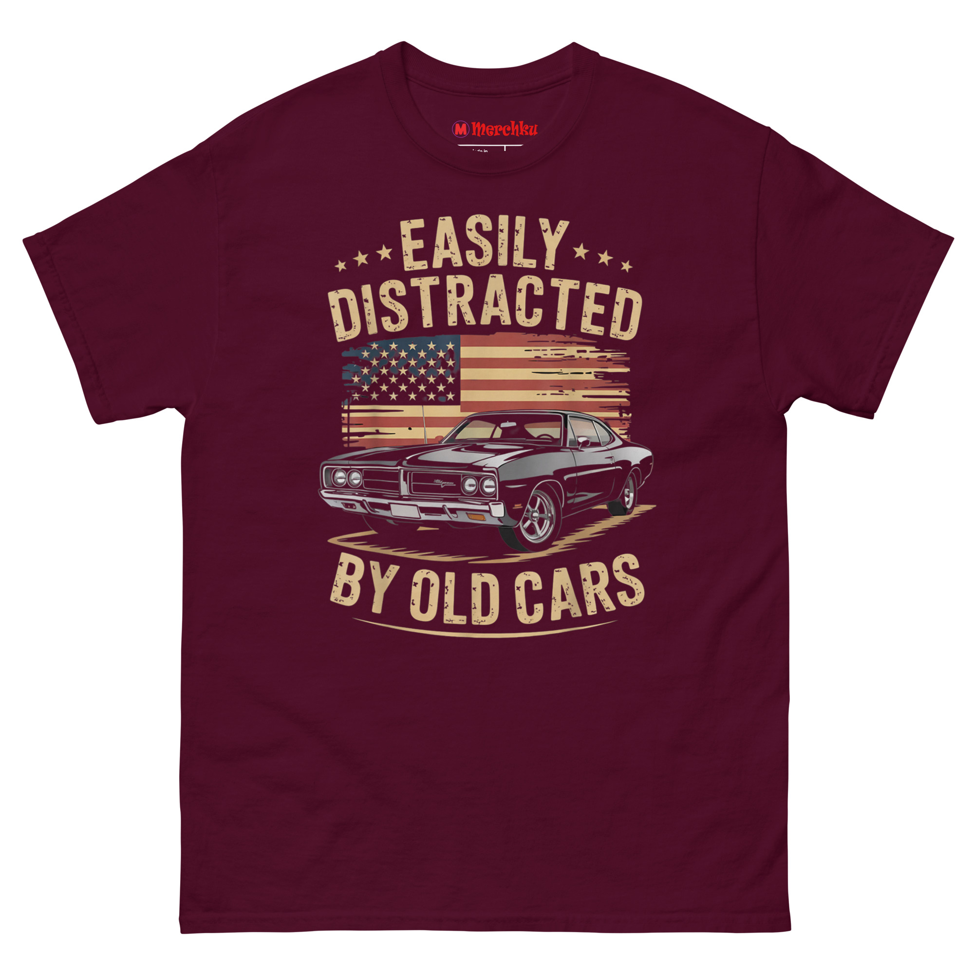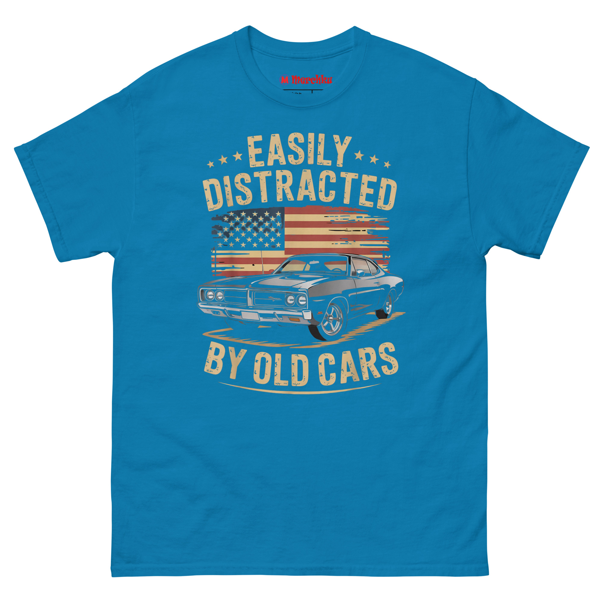 Ready to wear your passion on your sleeve? Grab your Easily Distracted by Old Cars T Shirt now. Click your size above to add this classic car enthusiast lifestyle apparel to your cart. Whether it’s a funny car guy birthday gift ideas for a friend or a personal confession, this shirt celebrates the roar of a V8 and the beauty of a classic ride. Order now and let everyone know what really catches your eye.