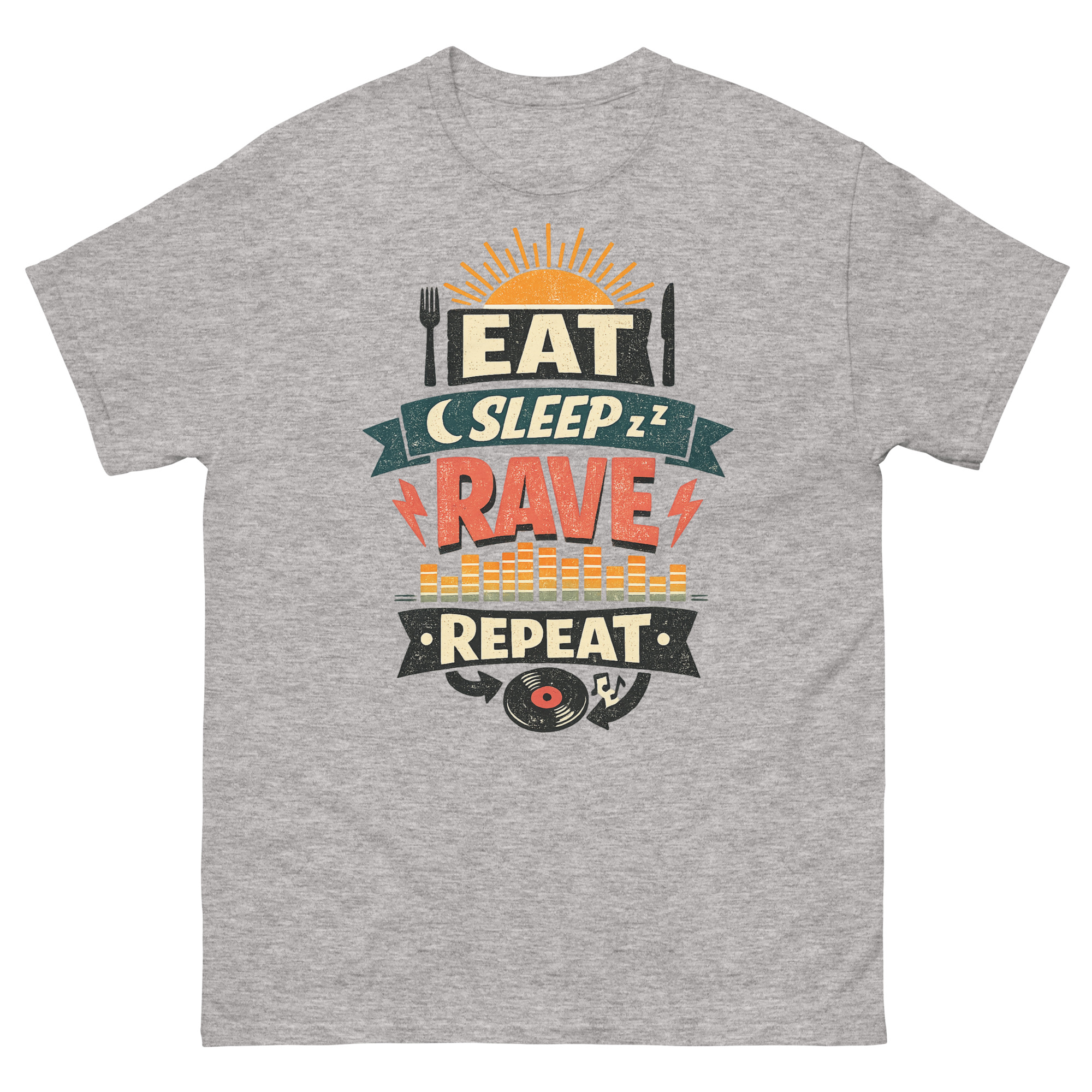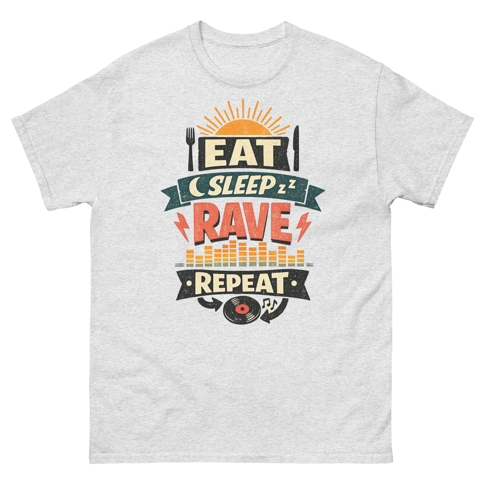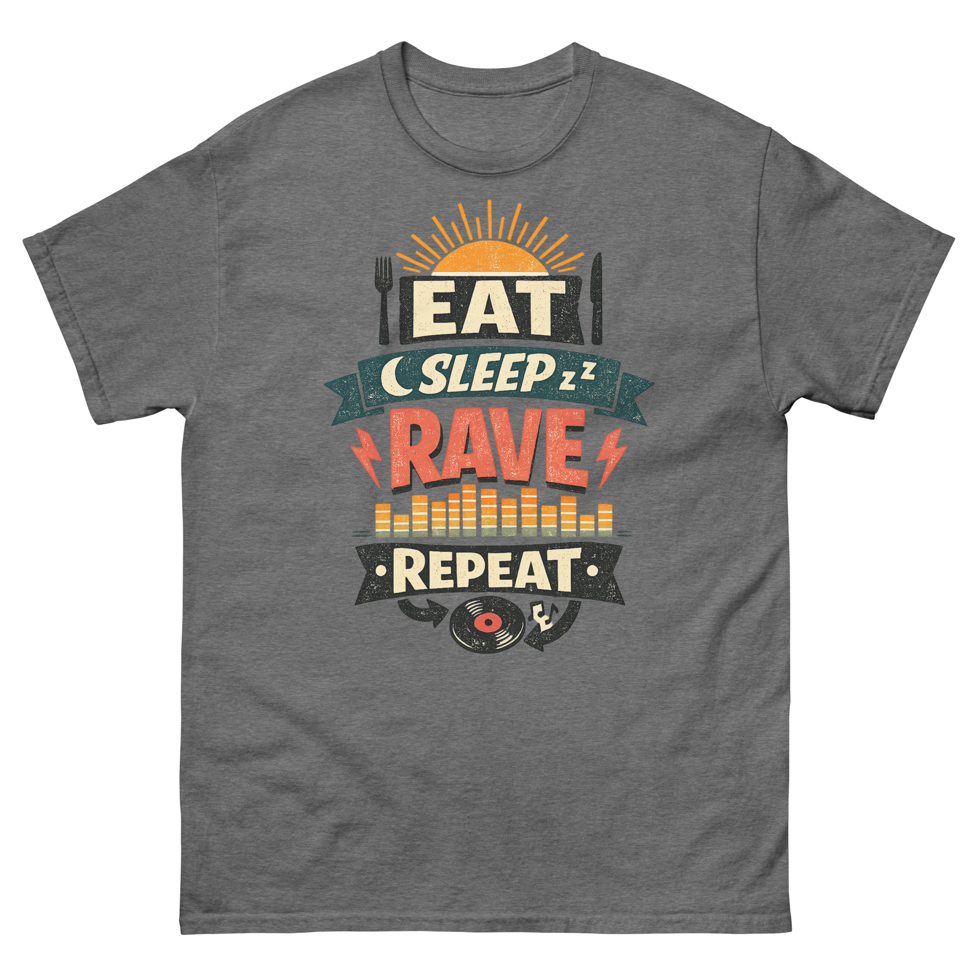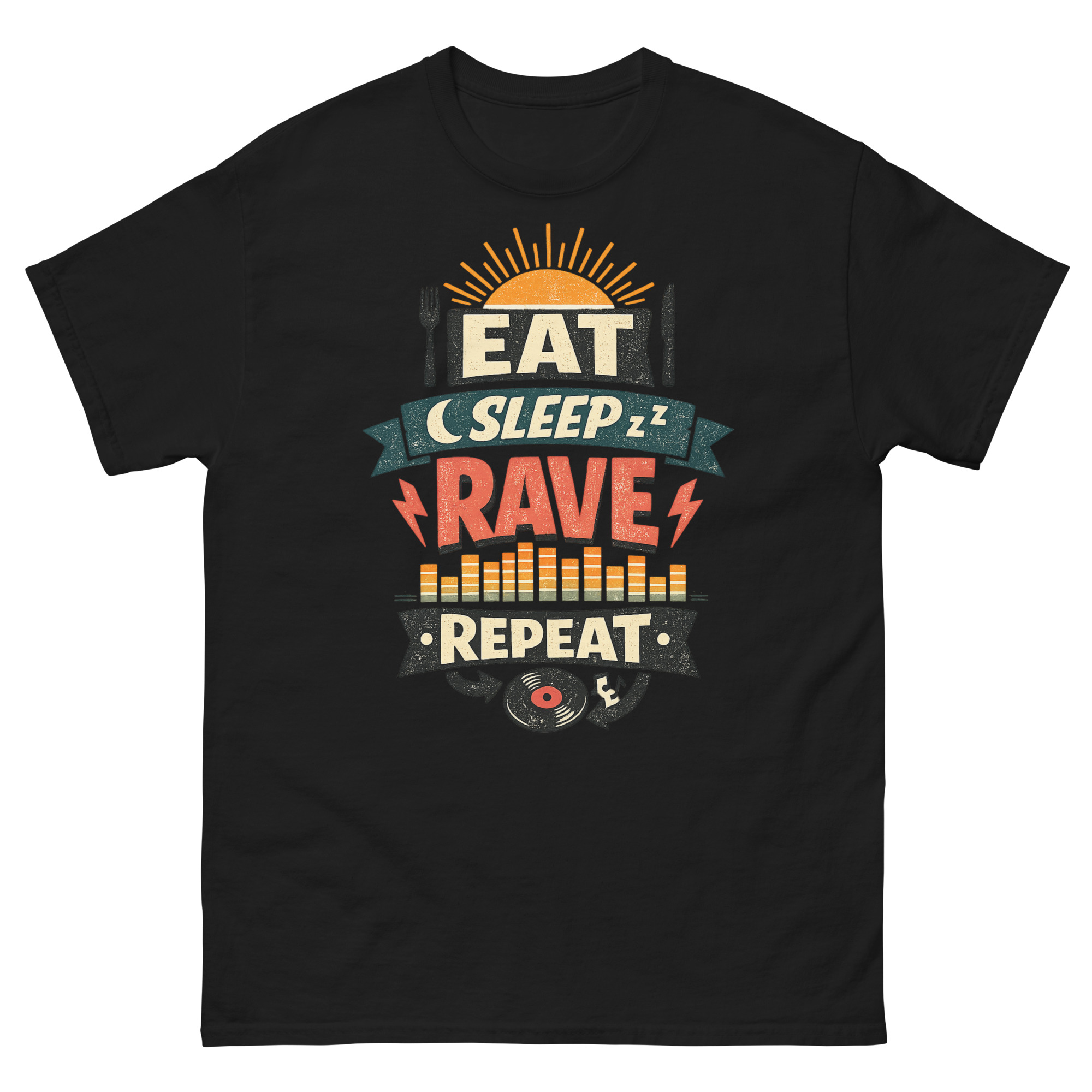 Eat Sleep Rave Repeat T Shirt – Vintage Festival & EDM Graphic Tee