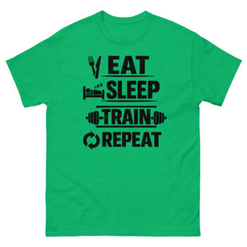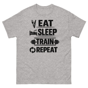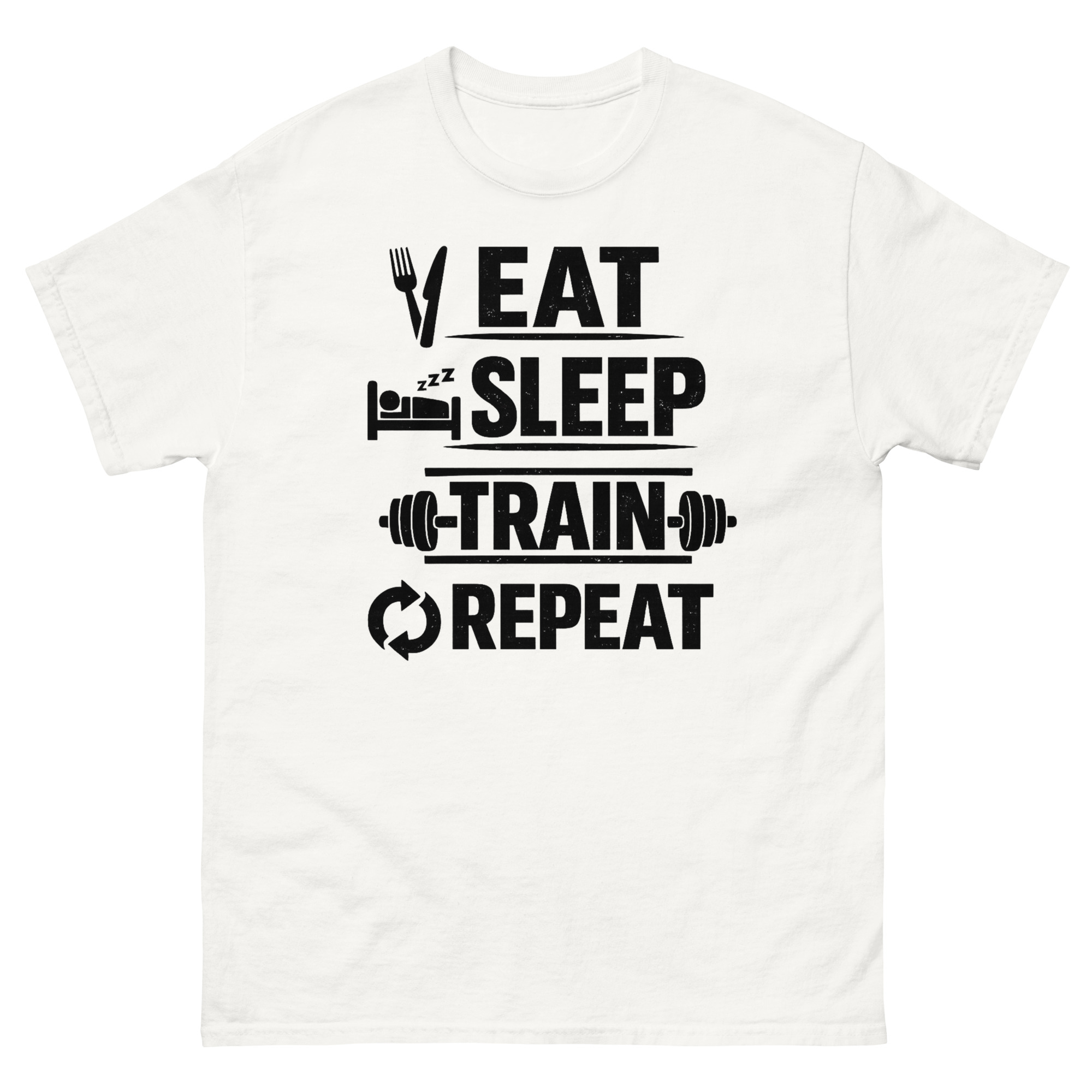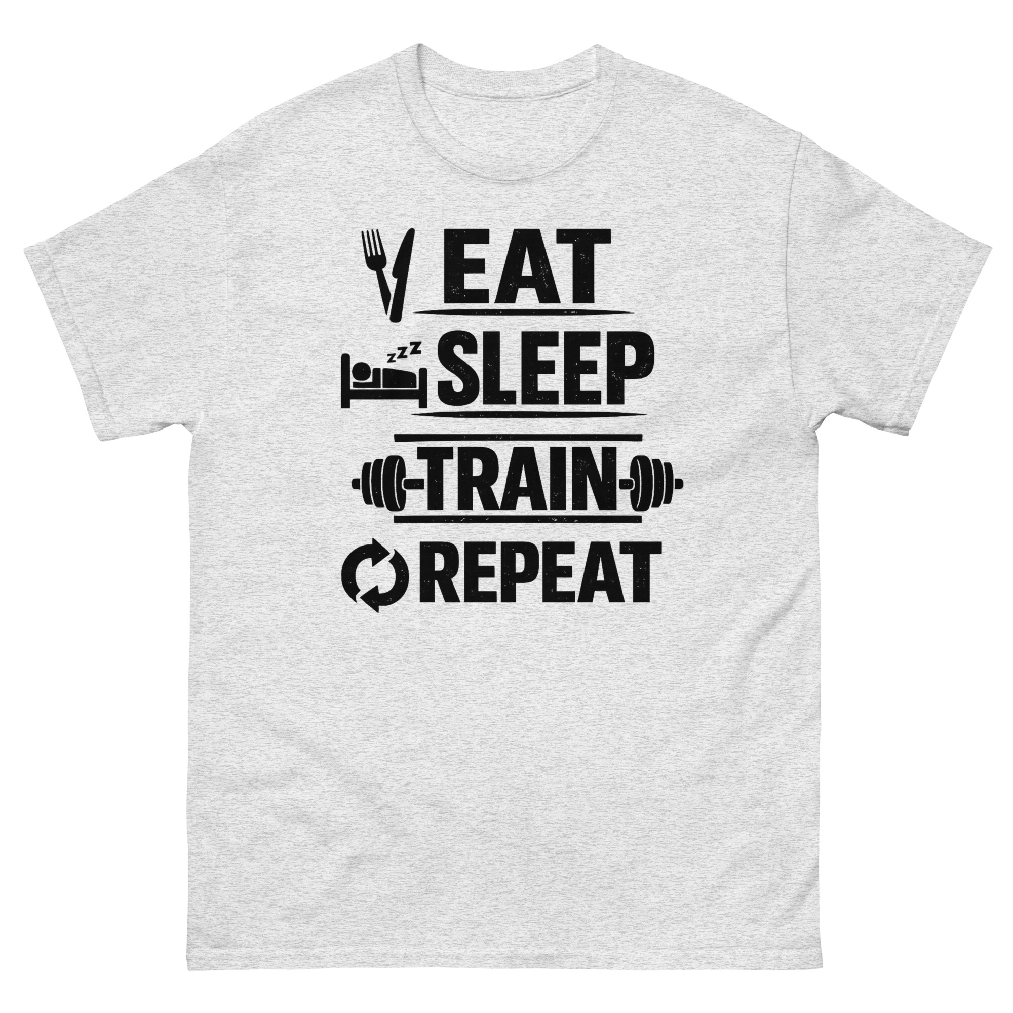 Eat Sleep Train Repeat T Shirt – Heavyweight Cotton Gym & Workout Tee