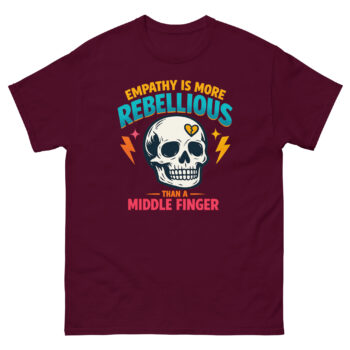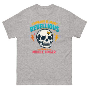 Don’t just wear a shirt, wear a message. The Empathy Is More Rebellious Than a Middle Finger Shirt is your chance to stand out, speak up, and stay soft in a hard world. Tap into your inner rebel with compassion as your weapon.