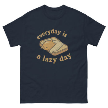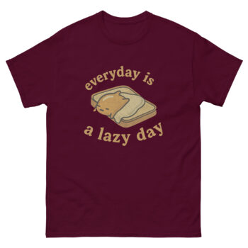 The curved “Everyday Is a Lazy Day” text paired with the sleepy egg-in-bread illustration creates an irresistibly cozy aesthetic. It’s not just a shirt—it’s a celebration of guilt-free relaxation, perfect for: