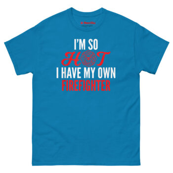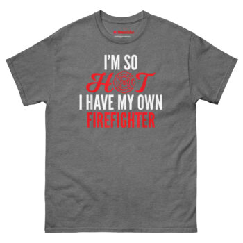 These Firefighter Wife T Shirts deliver a clever double meaning with undeniable style. The design declares “I’M SO HOT I HAVE MY OWN FIREFIGHTER,” featuring a vibrant Maltese Cross in place of the “O.” It’s first responder family support apparel designed for the confident spouse who wants to show her pride with a sassy, heat-themed punchline.
