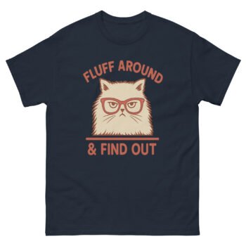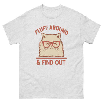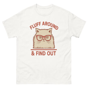 Ever met a cat who’s done with your nonsense? This Fluff Around & Find Out T-Shirt captures that energy perfectly. Featuring a glaring Persian cat in red glasses paired with the savage phrase we’re all thinking, this funny cat attitude tee is for those who embrace their inner feline fury. Whether you’re a sarcasm connoisseur, a cat lover with attitude, or just someone who appreciates bold humor, this sassy cat quote t-shirt speaks volumes without saying a word.