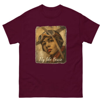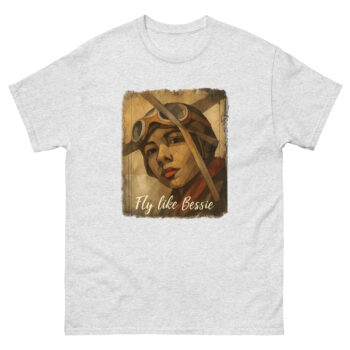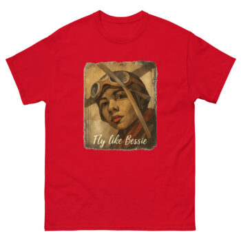 Celebrate the legacy of pioneering aviator Bessie Coleman with this vintage-styled “Fly Like Bessie” t-shirt. Featuring an artistic portrait inspired by historical aviation posters, this design is perfect for those who admire Black history icons and early aviation pioneers. Ideal for history lovers, collectors of inspirational apparel, and fans of empowering stories.