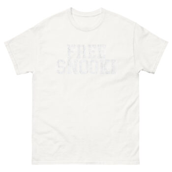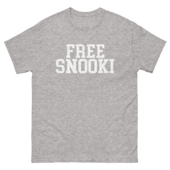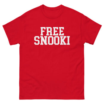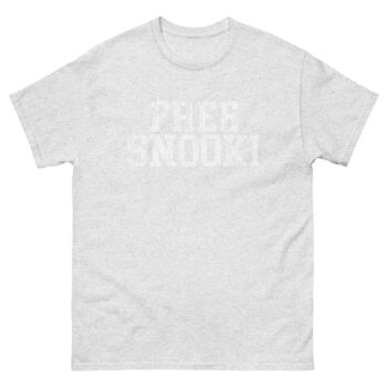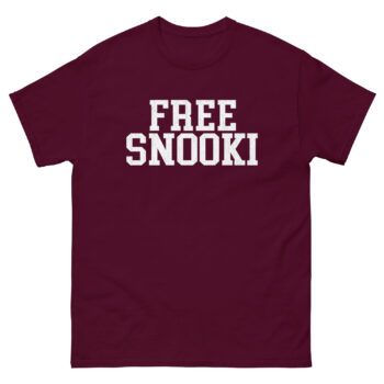 - Typography: “FREE SNOOKI” in bold, collegiate varsity font blocky, all-caps, and unapologetic.