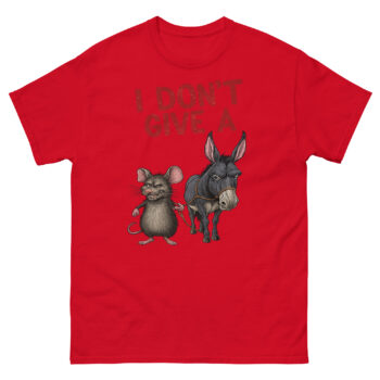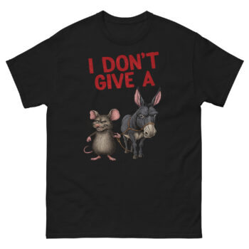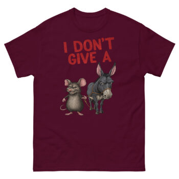 The design is simple but genius. Bold red letters state “I DON’T GIVE A,” right above a cute cartoon mouse and a wonderfully neutral donkey. Your brain instantly connects the dots, completing the classic phrase in the most family-friendly way possible. This sarcastic donkey shirt gift idea is perfect for anyone with a dry sense of humor and a love for clever jokes. It’s a hilarious animal graphic tee for men and women that says everything without shouting.