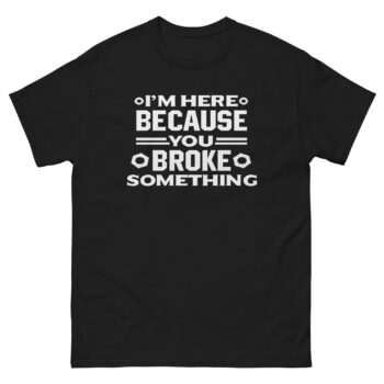 I’m Here Because You Broke Something T-Shirt – Funny Mechanic Gift Tee