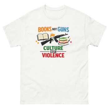 Books Not Guns Culture Not Violence Shirt – Broken Rifle Art Tee