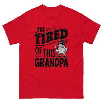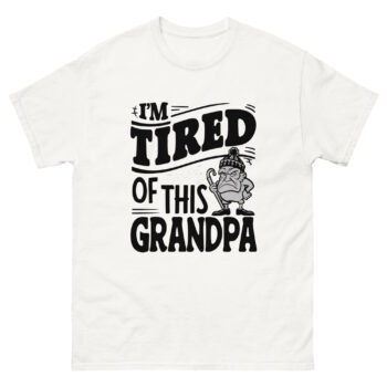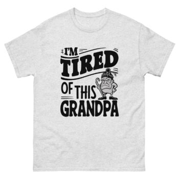 Make grandpa the center of attention (in the funniest way possible) with this “I’m Tired of This Grandpa” t-shirt. Featuring a bold, vintage-style font and a cartoon grumpy grandpa illustration, this shirt is perfect for family gatherings, birthdays, Father’s Day, or as a humorous everyday wear.