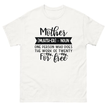 The “Mother Definition” shirt is a hilarious take on motherhood. Featuring a bold definition-style design, it reads: Mother [muht-er] – noun: one person who does the work of twenty for free. Perfect for moms with a sense of humor, this shirt is a witty reminder of everything mums do every day.