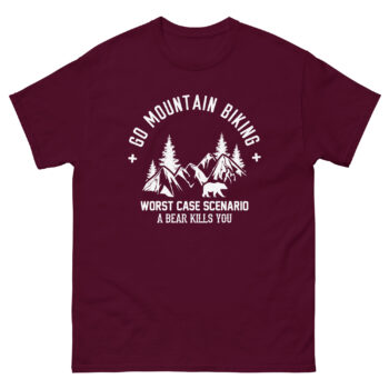 Let’s address the elephant—or rather, the bear—in the room. Mountain biking is an exhilarating rush, but let’s be honest, it can also be terrifying. Your mind races faster than your wheels: what if I wash out on this switchback? What if my chain snaps on the climb? And then there’s the king of all trail fears… what about bears? Instead of letting these anxieties dictate your ride, it’s time to confront them with the one weapon they can’t handle: your sense of humor. This mountain bike joke shirt isn’t just another mountain biking joke tee; it’s a declaration of defiance. It states that you understand the risks, you’ve acknowledged the “worst-case scenario,” and you’ve chosen to saddle up anyway. That, right there, is the heart of a true rider.