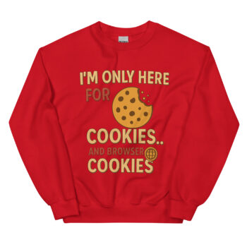 Then comes the punchline, crafted with typographic precision: “I’M ONLY HERE FOR COOKIES.. AND BROWSER COOKIES”. The brilliant use of bold red for the word “FOR” makes the entire phrase pop and guides the reader’s eye through the joke. This isn’t just a pun; it’s a layered piece of programmer coding humor that anyone from a front-end developer to a sysadmin will instantly appreciate. It’s a clever nod to the constant negotiation between our real-world desires and our digital realities, making it the perfect geeky internet meme sweatshirt for developers.