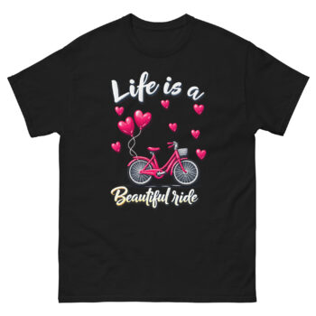 Life Is A Beautiful Ride T Shirt – Pink Bike & Heart Balloons Art Tee