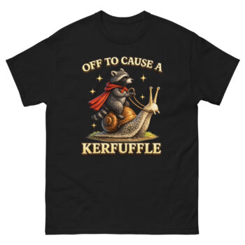 Off To Cause A Kerfuffle Raccoon Shirt – Raccoon Riding Snail Art Tee