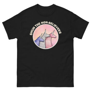 Shun the Non Believer Shirt – Meme Inspired Unicorn Graphic Tee