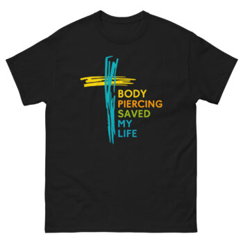 Body Piercing Saved My Life Shirt – Brushstroke Cross Graphic Tee