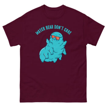 Consequently, the slogan “Water Bear Don’t Care” isn’t just a funny phrase; it’s a scientific fact. This makes our shirt the ultimate indestructible animal joke shirt. It’s an inside joke for anyone who understands just how resilient this tiny hero truly is. Wearing this design instantly connects you to a community that appreciates the wonders of microbiology.