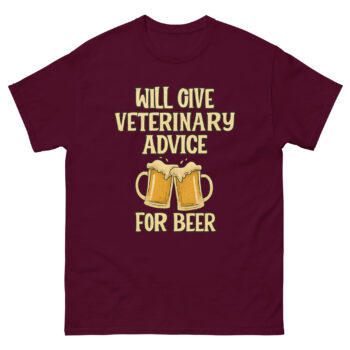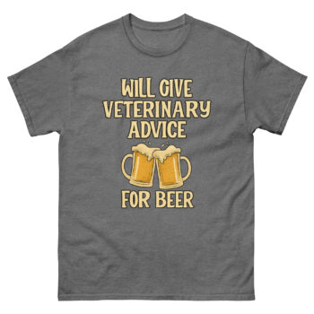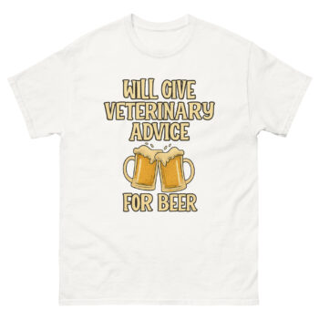 This “Will Give Veterinary Advice for Beer” design taps into a universal truth within the animal care community. It’s a hilarious and relatable unique funny t shirt for animal clinic assistants and staff that acknowledges the reality of their situation with warmth and humor. It transforms a simple beverage into a token of mutual respect and appreciation.