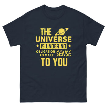 Have you ever looked up at the stars and felt a mix of wonder and confusion? You’re not alone. This Geek Universe T-Shirt is for anyone who embraces the beautiful, hilarious mystery of it all. It’s not just clothing; it’s a conversation starter and a badge of honor for curious minds. Featuring the iconic quote, “The Universe Is Under No Obligation to Make Sense To You,” this isn’t just another astronomy geek quote shirt for students; it’s a philosophy woven into cotton.