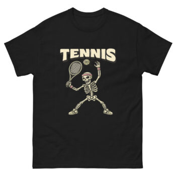 Skeleton Tennis Player Funny Graphic T-Shirt