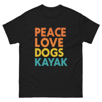 Peace Love Dogs Kayak Shirt for Dog Lovers & Paddlers