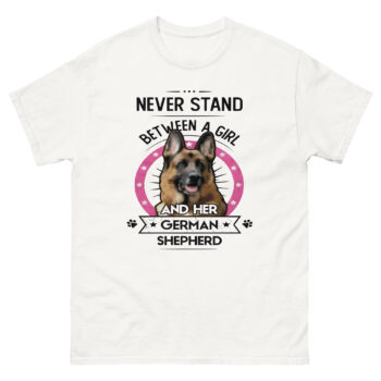 Every girl with a German Shepherd knows a secret. This dog is more than a pet; it’s a loyal guardian, a best friend, and a part of the family. Their bond is powerful and special. This Never stand between girl and dog tee celebrates that amazing connection. It’s a fun and bold way to show the world the fierce love between a girl and her German Shepherd. If you understand this friendship, this girl and her german shepherd tee is for you.