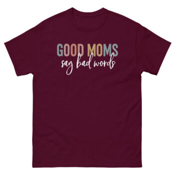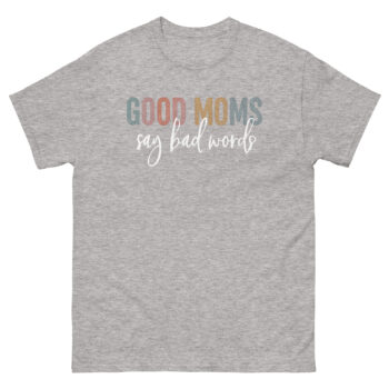 This “Good Moms Say Bad Words” t-shirt! hilariously honest tee features the relatable quote in a stylish mix of colorful block letters and elegant script, making it a perfect statement piece for any modern mom. A cool gift for the mom who keeps it real and doesn’t shy away from expressing herself authentically!