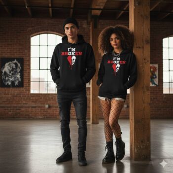 Broken Hearts Skull Hoodie – Gothic Streetwear for Heartbreakers