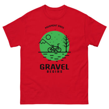 Have you ever reached that beautiful, quiet point on your ride where the hum of asphalt fades and is replaced by the crunch of stone beneath your tires? This moment—the transition from the ordinary to the extraordinary—is a feeling every cyclist chases. Consequently, it’s a feeling that deserves to be celebrated, not just on the bike but off it as well. That’s precisely why we created the “Pavement Ends Gravel Begins” cycling tee. This isn’t just another gravel cycling shirt; it’s a wearable manifesto for those who find peace on the path less traveled.