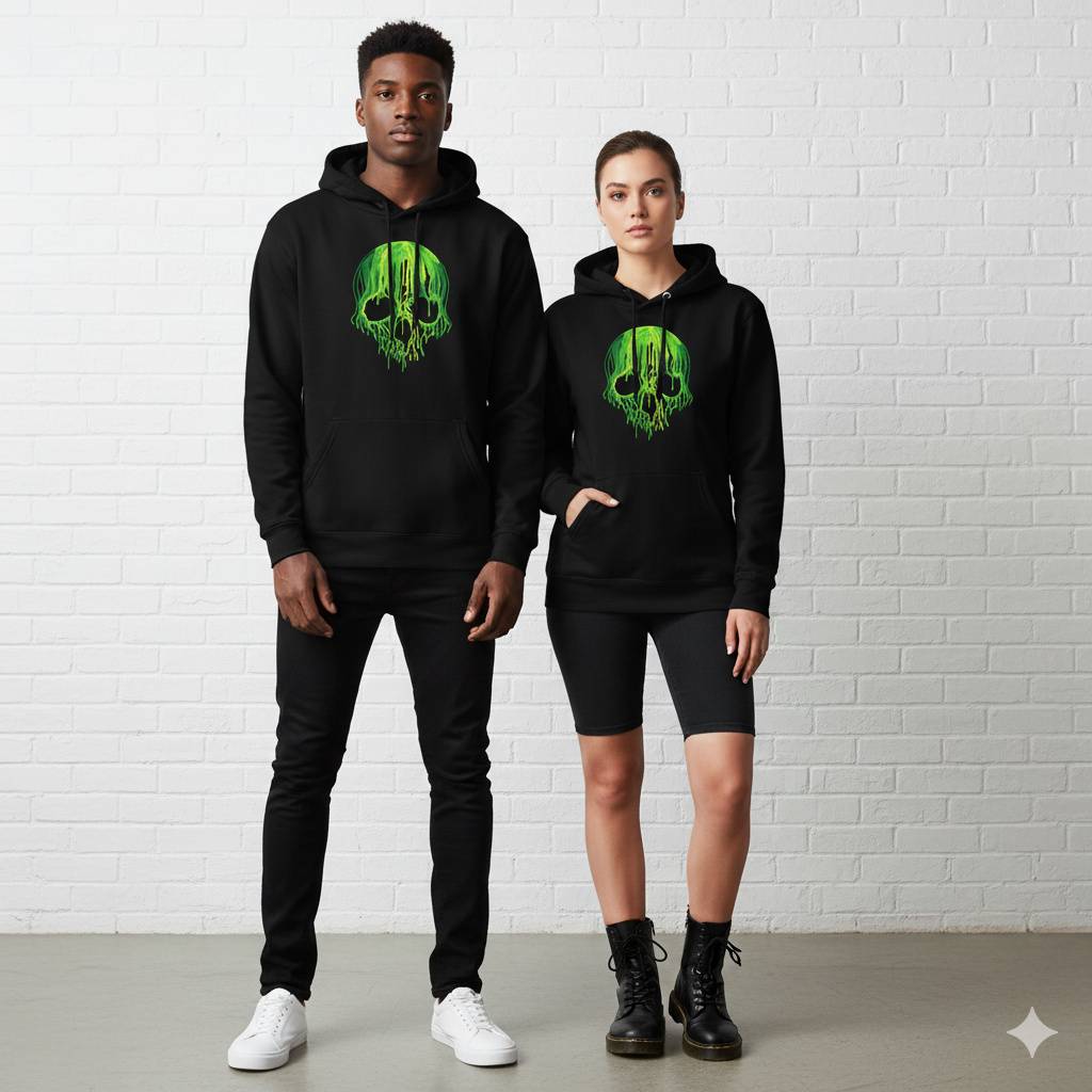 Are you tired of boring, basic hoodies that blend into the background? Your style deserves to make a statement, to be as bold and unique as you are. Imagine a piece that doesn’t just sit on your body but screams your identity from across the room. This is the vision behind our Green Skull Hoodie. This isn’t just another piece of clothing; it’s a wearable revolution for those who live and breathe alternative style hoodie culture. From its gothic graphic hoodie roots to its modern, radioactive twist, this piece is built for the rebels, the creators, and the non-conformists.