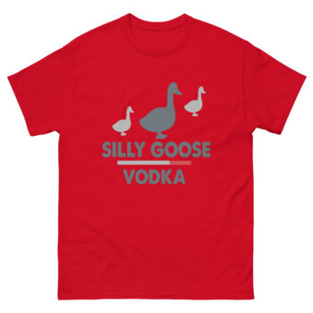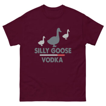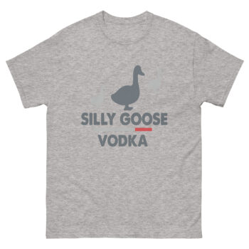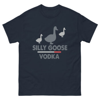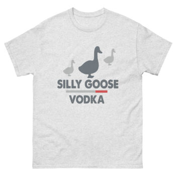 Inspired by the iconic elegance of Grey Goose, this parody tee flips the narrative. Instead of refined minimalism, you get a trio of cheeky goose silhouettes strutting across your chest, paired with bold typography that proudly declares: “SILLY GOOSE VODKA.” It’s a visual pun that lands instantly, especially for vodka enthusiasts who don’t take themselves too seriously.