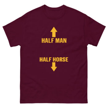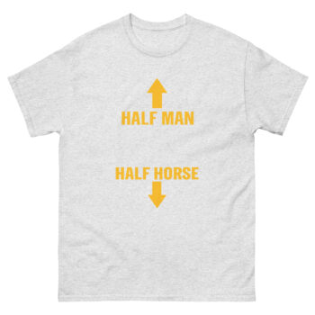 Have you ever looked at a classic painting of a mighty centaur and thought, “That’s awesome, but it needs a little more… explanation?” Well, our creative team did! That’s precisely how the legendary Half Man Half Horse Shirt was born. Get ready to turn heads and spark conversations with a tee that’s as clever as it is comfortable.