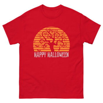 Celebrate spooky season in style with this Haunted Tree Happy Halloween T-shirt. Featuring a dark twisted tree silhouette against an orange sunset with flying bats, it’s perfect for Halloween night, pumpkin patch visits, and seasonal gatherings.