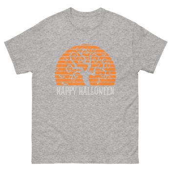 When autumn nights grow longer and shadows creep across pumpkin-lit porches, only one shirt truly embodies Halloween’s eerie magic—this Haunted Tree Happy Halloween T-Shirt. Featuring a twisted silhouette against a glowing orange sunset, complete with fluttering bats, this design is perfect for those who love classic, atmospheric Halloween style.