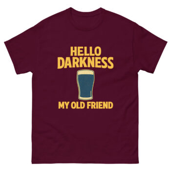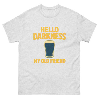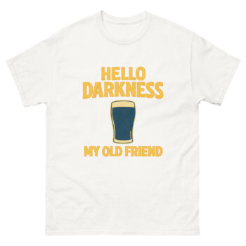 You probably know the famous song by Simon & Garfunkel. The line “Hello darkness, my old friend” feels deep and thoughtful. However, this shirt playfully flips that meaning. For lovers of dark beer, “darkness” isn’t something sad. Instead, it’s a rich, creamy stout waiting in a pint glass.