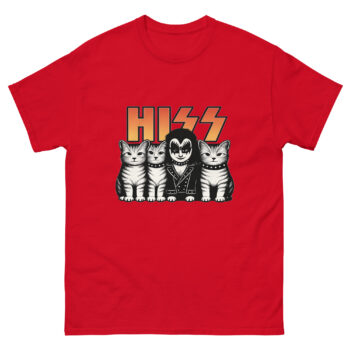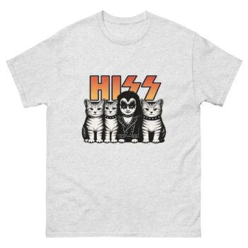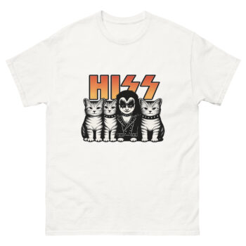 What happens when you mix classic rock nostalgia with feline mischief? You get this HISS Cat Parody T-Shirt – a funny cat music t-shirt that’s equal parts rock-and-roll and whiskered charm. Whether you’re a die-hard music fan, a cat enthusiast, or just someone who loves clever puns, this feline rock band parody tee is your new must-have.