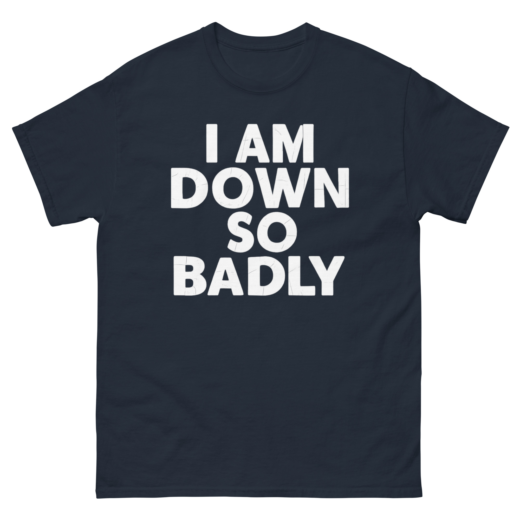 This I Am Down So Badly T Shirt acts as a social filter. It connects you with people who understand the humor in shared despair. It’s for anyone who’s ever scrolled too deep, liked one too many photos, or just needs to laugh at their own current situation.