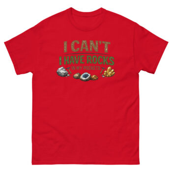 Let your clothes explain why you’re always busy (or weighed down). The I Can’t I Have Rocks in My Pockets T Shirt is more than a sarcastic geology slogan; it’s a celebration of every specimen you just had to bring home. Grab this essential piece of mineralogy student gear today and wear your passion with pride.