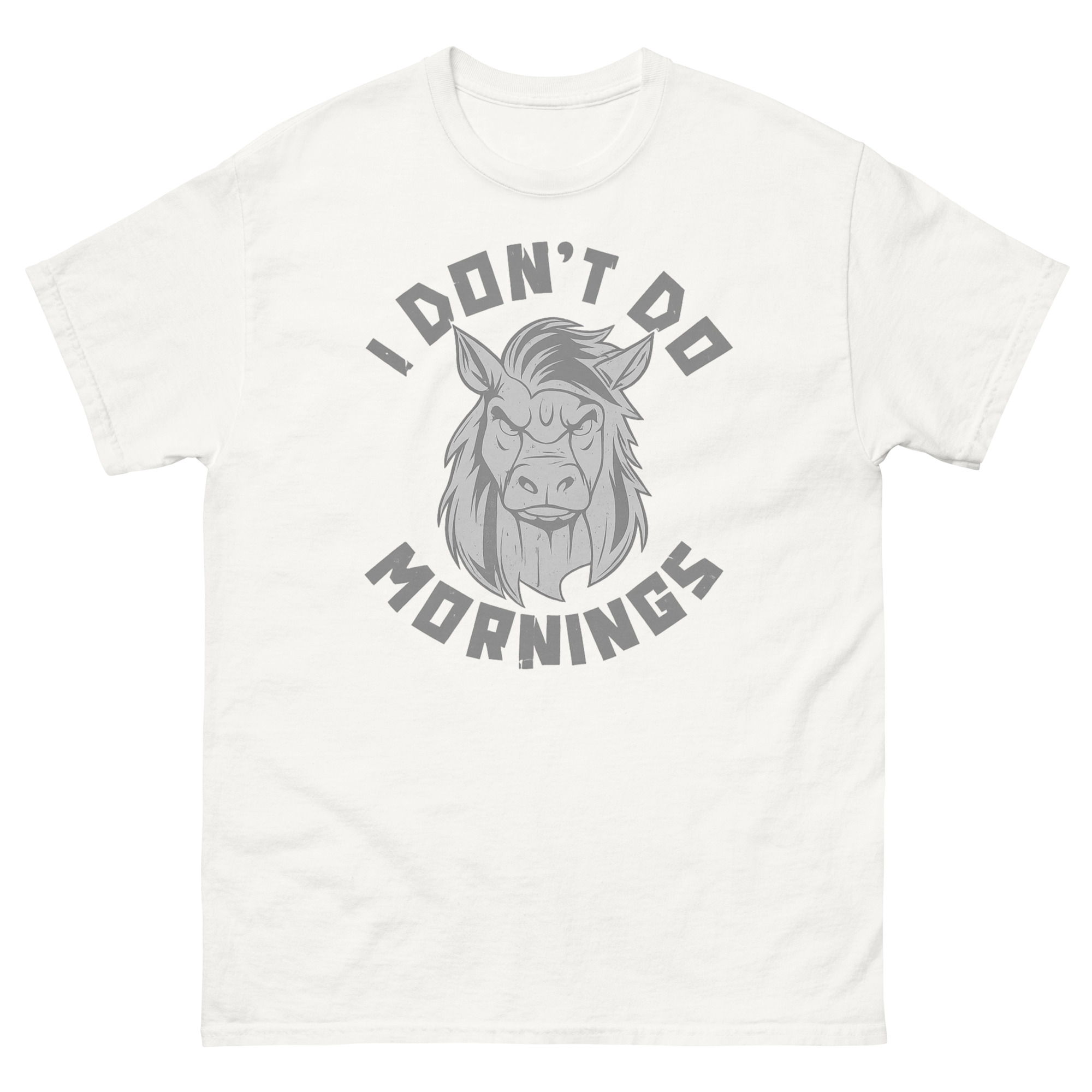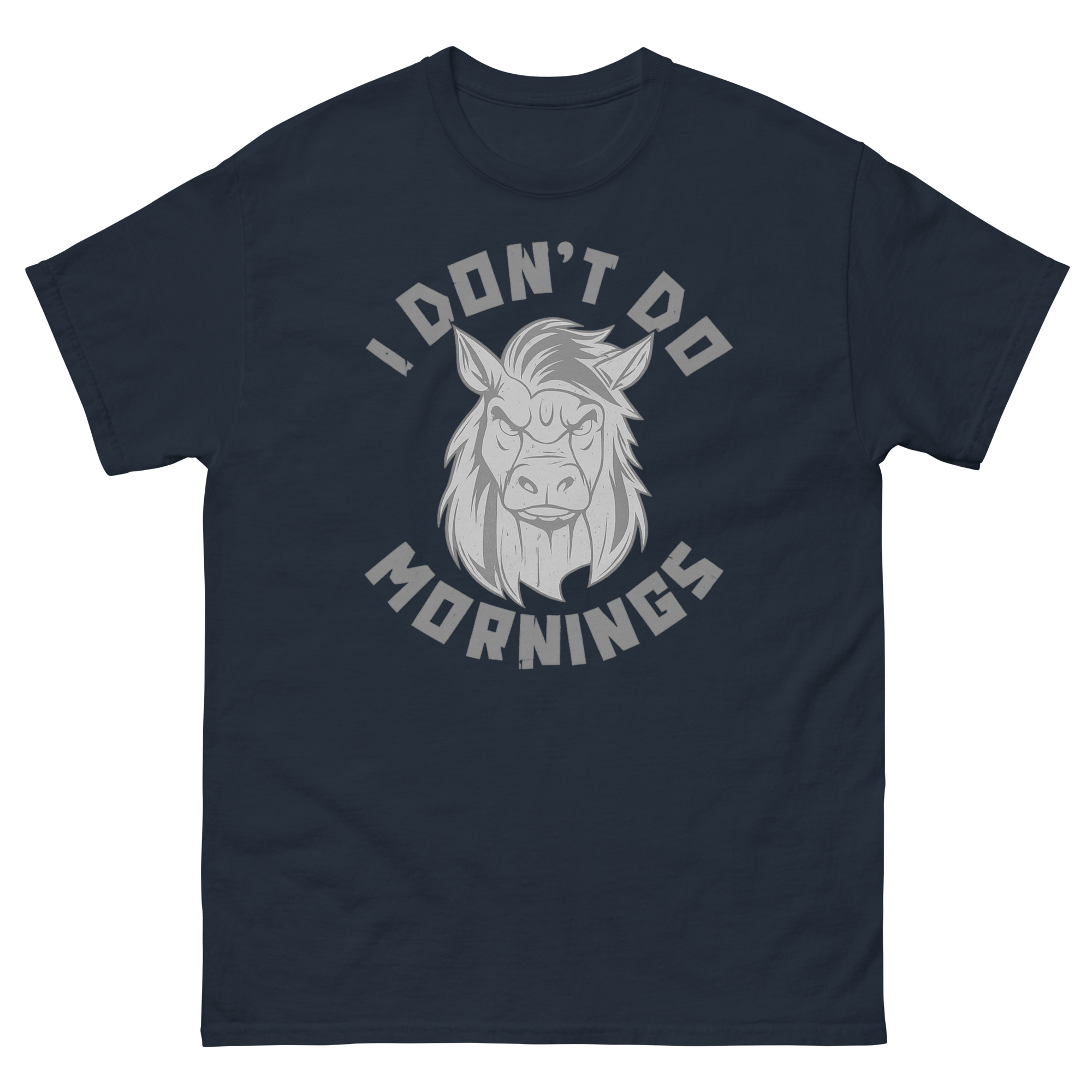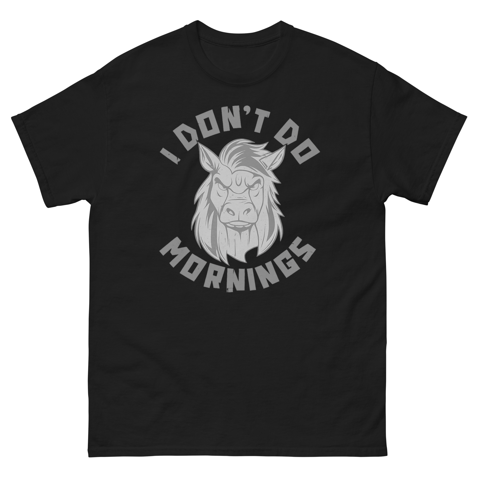 Let’s be honest: the sound of your alarm clock is one of life’s great annoyances. That groggy, grumpy feeling before your first cup of caffeine is a shared human experience. For all the night owls, the slow starters, and those who consider sunrise a personal insult, we created a tribute. This I Don’t Do Mornings Shirt isn’t just apparel, it’s your official, wearable mood for those early hours. Featuring a hilariously distressed horse with epic bedhead, it speaks your truth without you saying a word.