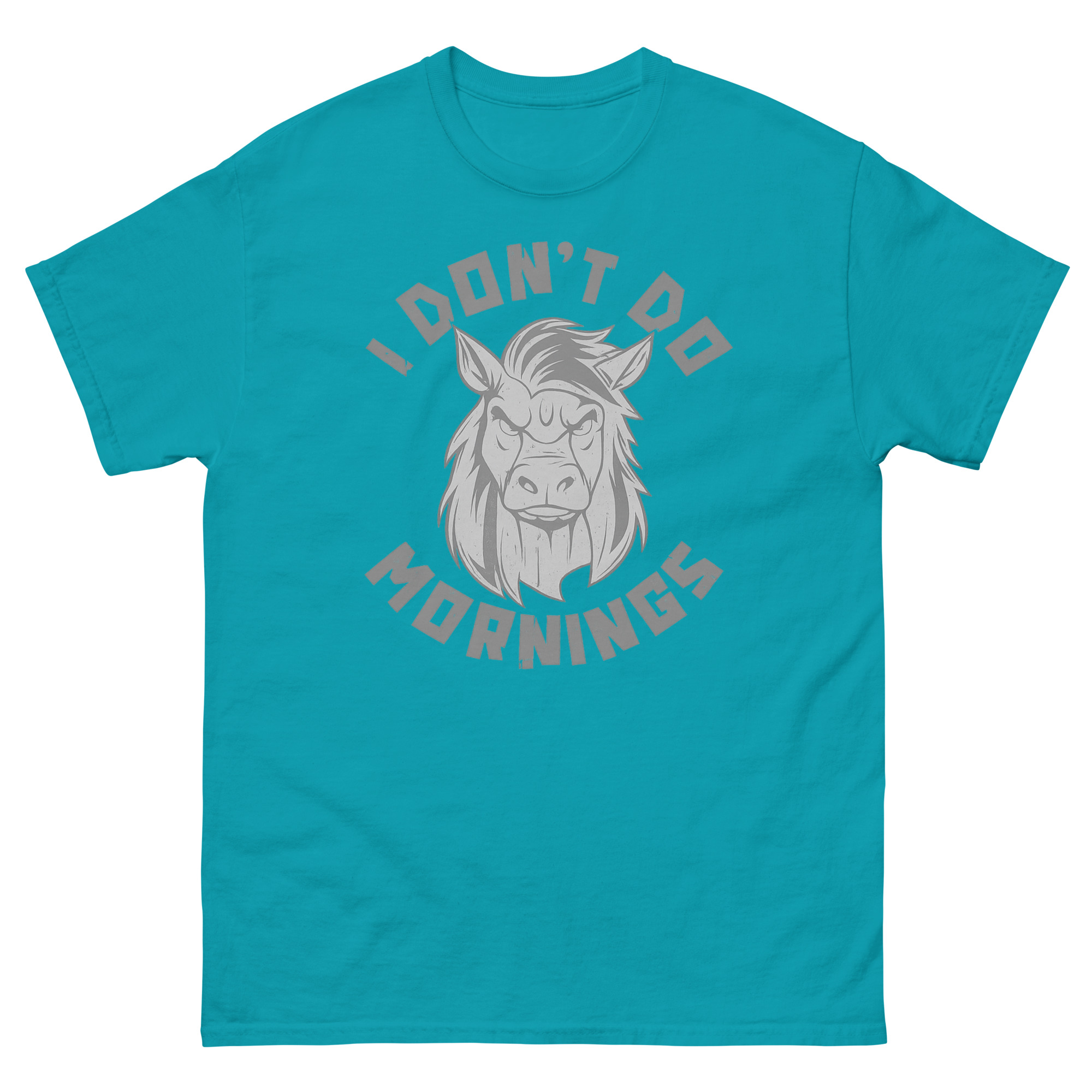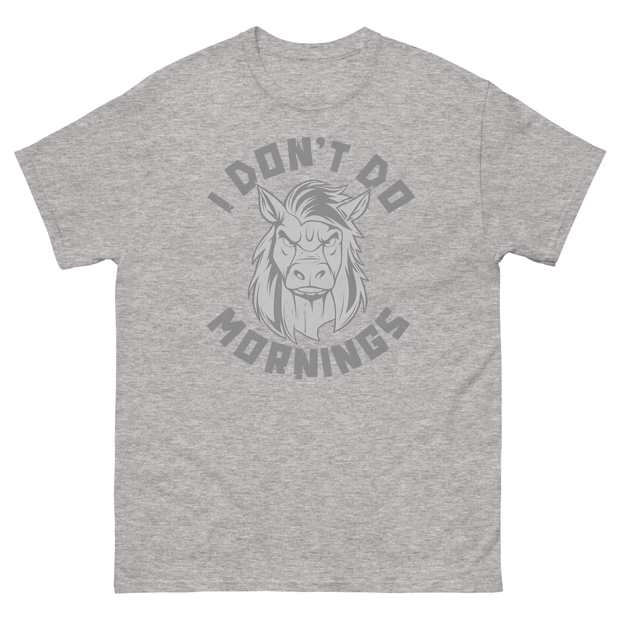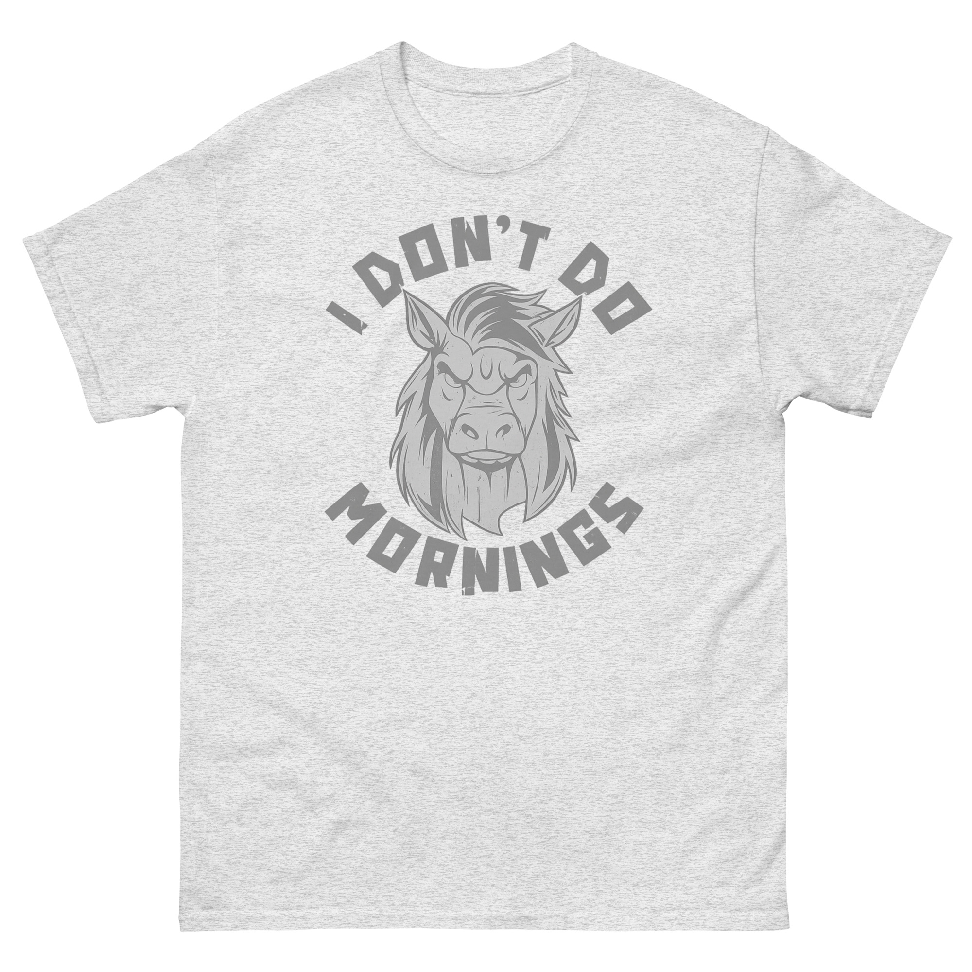 Let’s be honest: the sound of your alarm clock is one of life’s great annoyances. That groggy, grumpy feeling before your first cup of caffeine is a shared human experience. For all the night owls, the slow starters, and those who consider sunrise a personal insult, we created a tribute. This I Don’t Do Mornings Shirt isn’t just apparel, it’s your official, wearable mood for those early hours. Featuring a hilariously distressed horse with epic bedhead, it speaks your truth without you saying a word.