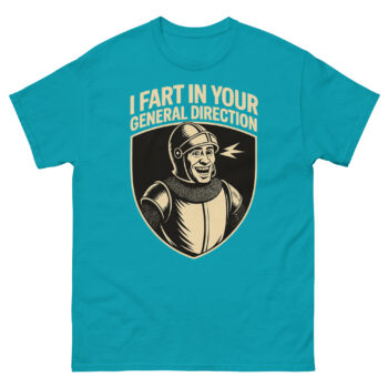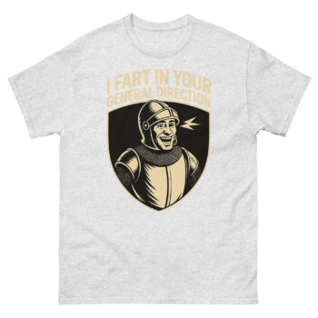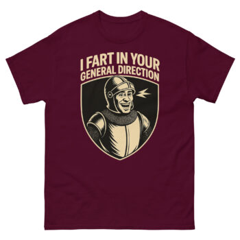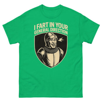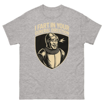 Don’t just remember the scene, wear it. The “I Fart In Your General Direction Shirt” is more than casual wear; it’s a badge of honor for fans of absurd genius. It represents a commitment to quality, a deep love for a cult classic, and the timeless joy of a perfectly delivered joke. Whether for yourself or as the perfect gift, this shirt turns a legendary movie quote into a personal statement. Click to choose your size and join the ranks of those who know that true comedy is timeless, bold, and beautifully rude. Claim your piece of Monty Python and the Holy Grail history today!