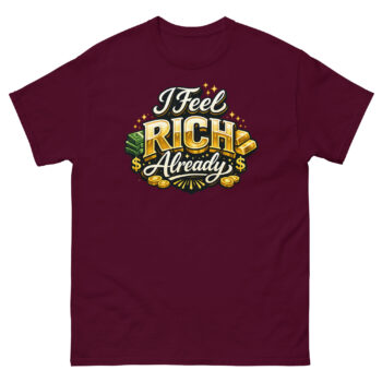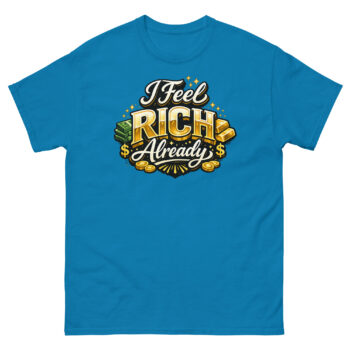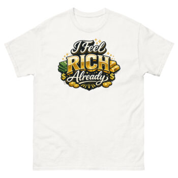 Therefore, this I Feel Rich Already Shirt has become a favorite in specific communities. It’s powerful clothing for manifesting wealth and personal success, often worn during goal-setting sessions or before important meetings. Furthermore, it makes an impactful gift for aspiring entrepreneurs and business owners, offering a daily dose of visual motivation. You’ll also see it as popular wealth-themed apparel for motivational speakers and coaches on casual days, or as a confident statement during weekend errands for anyone practicing the law of attraction.