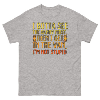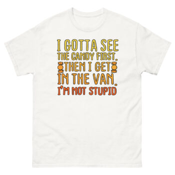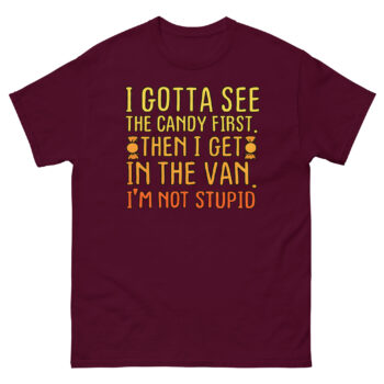 If you appreciate humor that makes people do a double-take, this is your shirt. Don’t just get the joke, wear it with confidence. Click ‘Add to Cart’ to secure your I Gotta See The Candy First T Shirt today. It’s more than apparel; it’s a badge of clever, unapologetic wit for your next outing.
