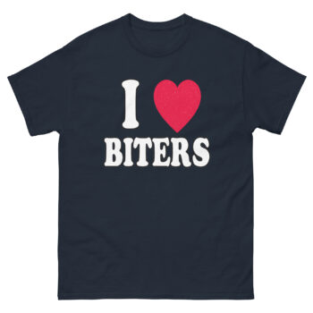 Don’t just wear a shirt—wear a story, a joke, and an invitation for connection. Stop explaining your sense of humor and start wearing it. The I Heart Biters Shirt is the perfect way to express your unique fandom and quirky side.