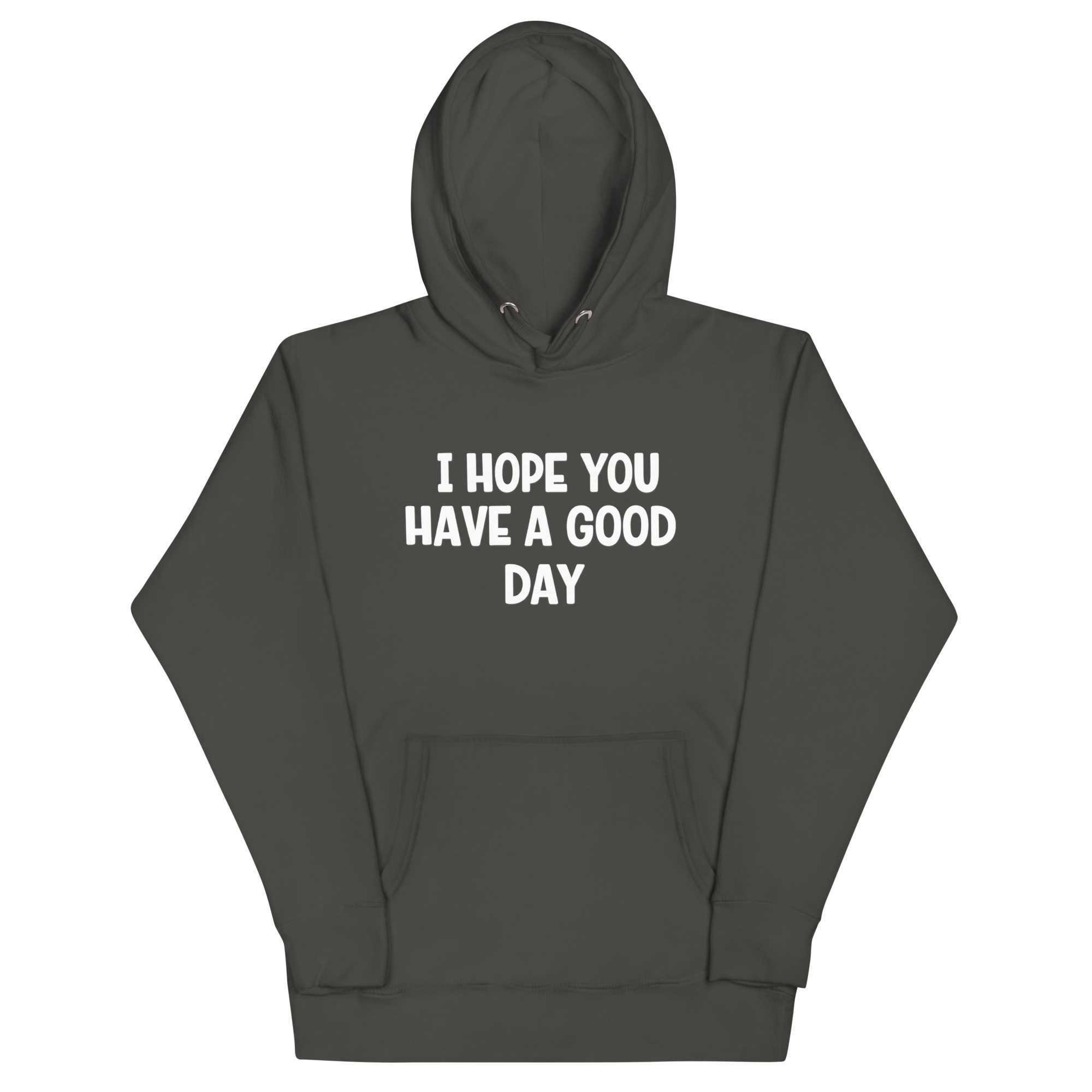A Clear, Friendly Message: The phrase “I HOPE YOU HAVE A GOOD DAY” is printed in bold, white, uppercase letters across the chest. The slightly rounded font feels approachable and warm, not aggressive.