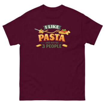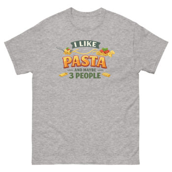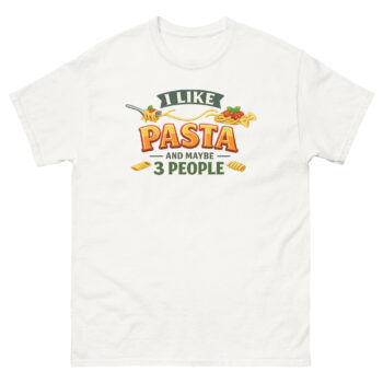 There’s no need to overcomplicate a good thing. If you love a perfect plate of al dente noodles and cherish your small circle, this I Like Pasta And Maybe 3 People T Shirt is made for you. It’s the ultimate piece of spaghetti appreciation apparel for cozy nights in, grocery runs, or representing your love for Italian food. Don’t wait to add this standout playful streetwear item to your wardrobe. Click ‘Add to Cart’ now to get your unique misanthrope pasta enthusiast tee delivered quickly.