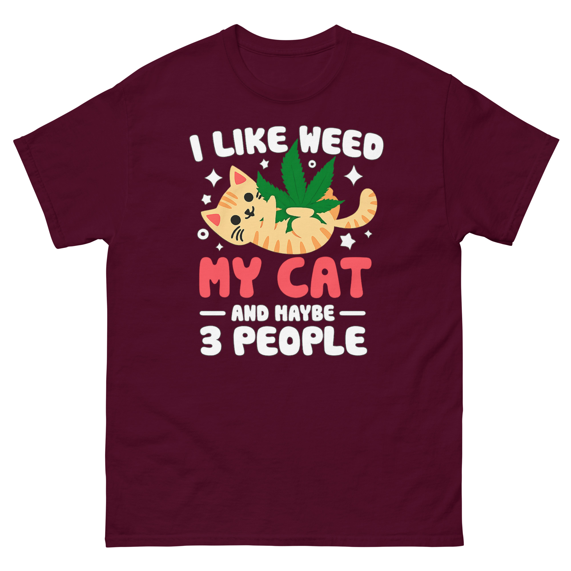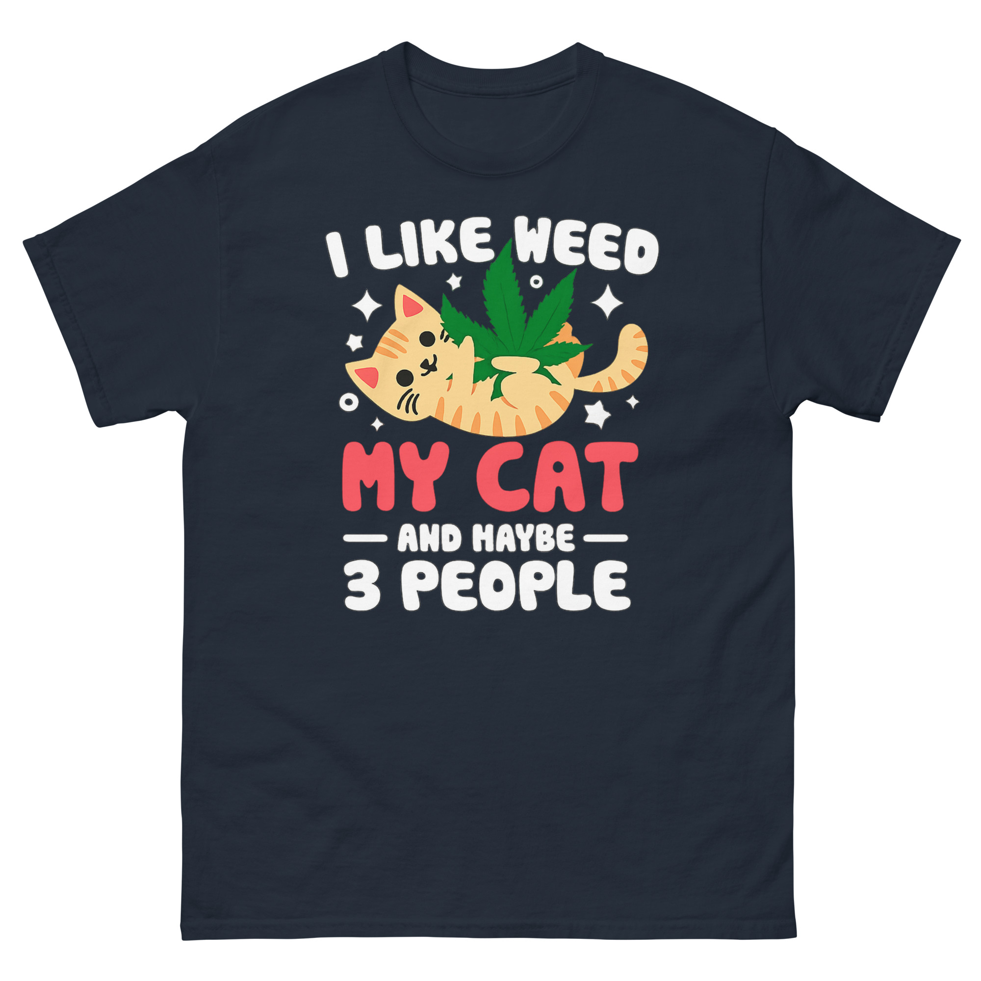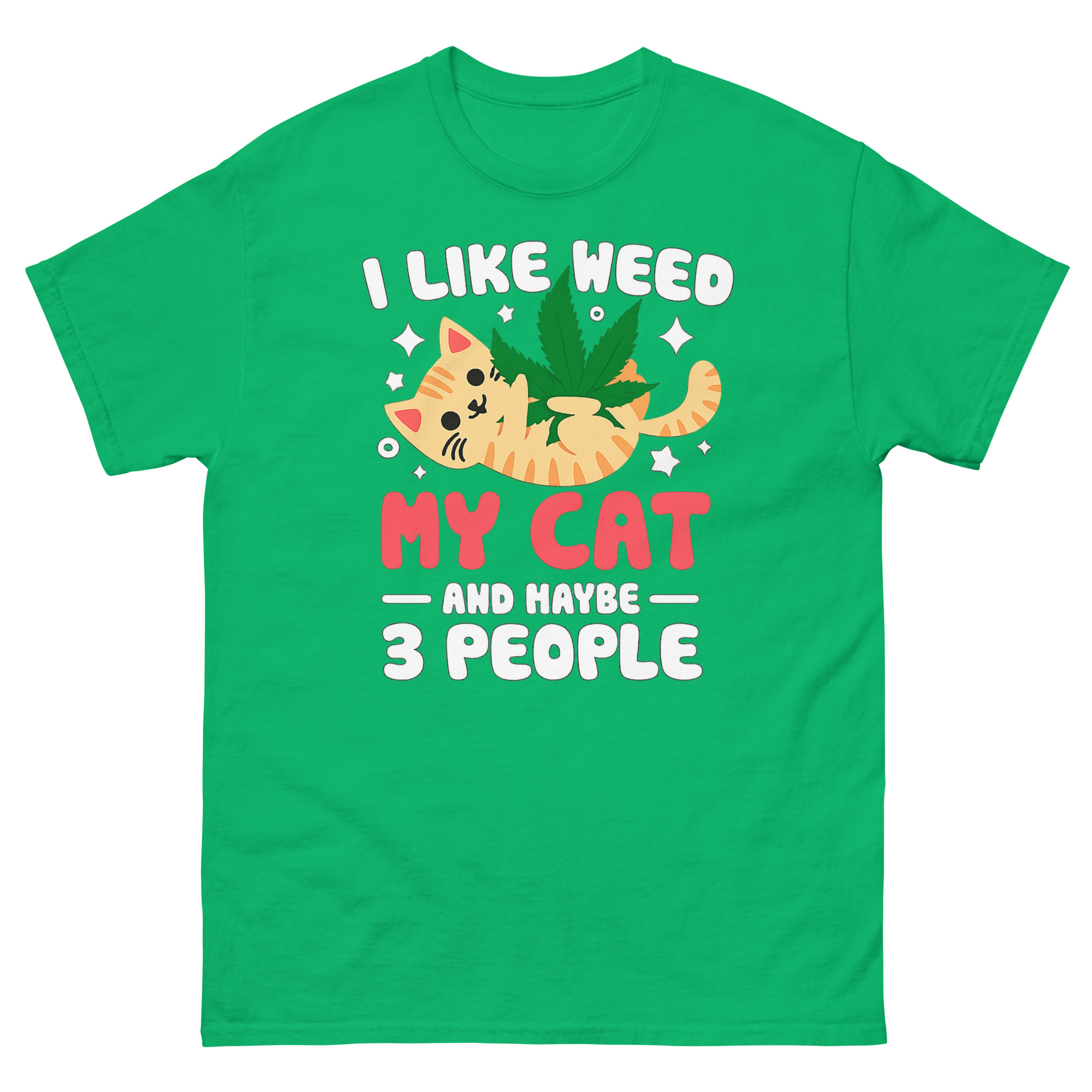 I Like Weed My Cat Maybe 3 People Shirt – Kawaii Cat & Leaf Graphic Tee